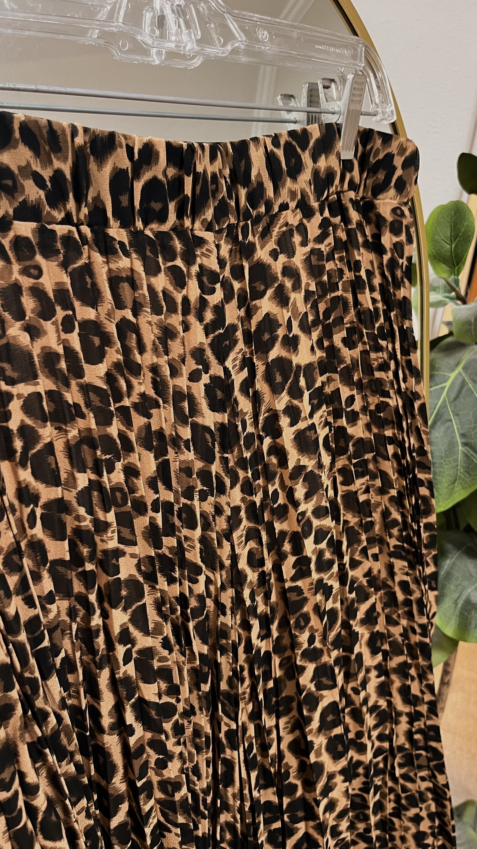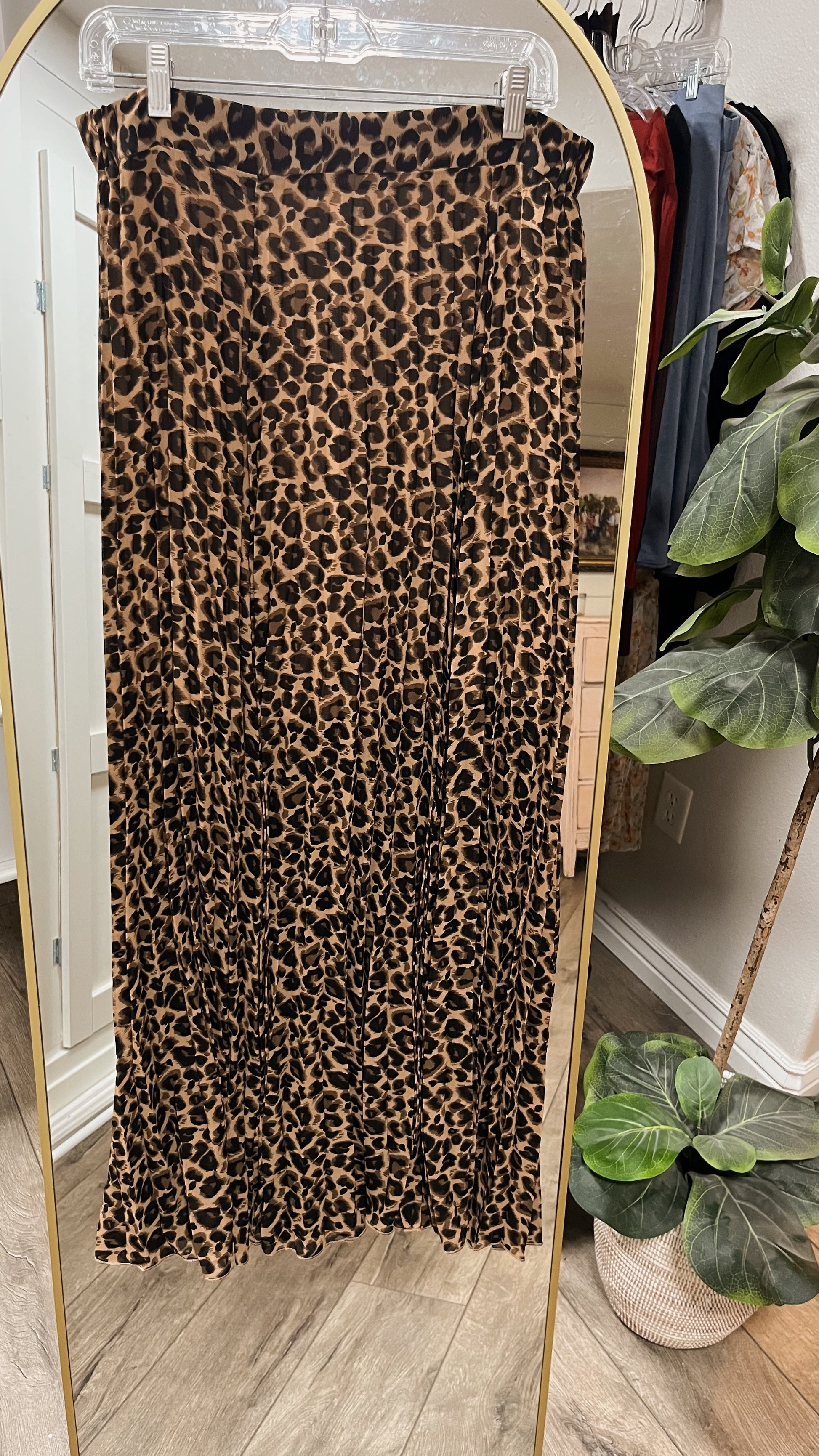 Leopard pleated skirt for a lightweight flow. Elastic waist-band in back. Pair with your favorite graphic or simple tee for a casual or elevated look!
